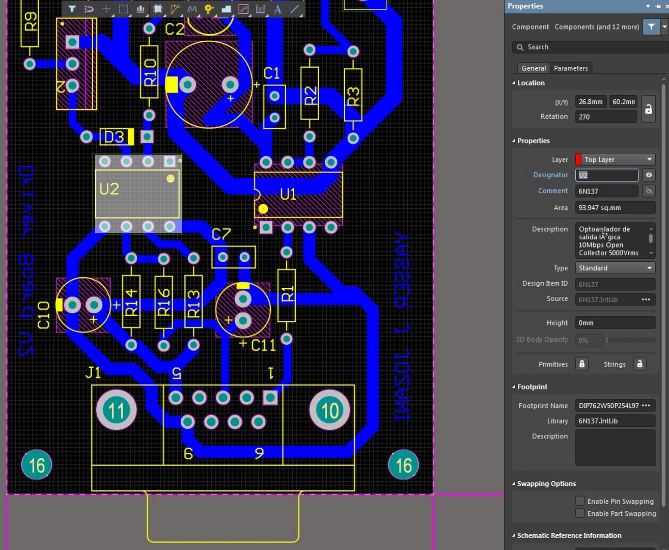 In the figures below, various parts of the PCB related to this project are shown.
